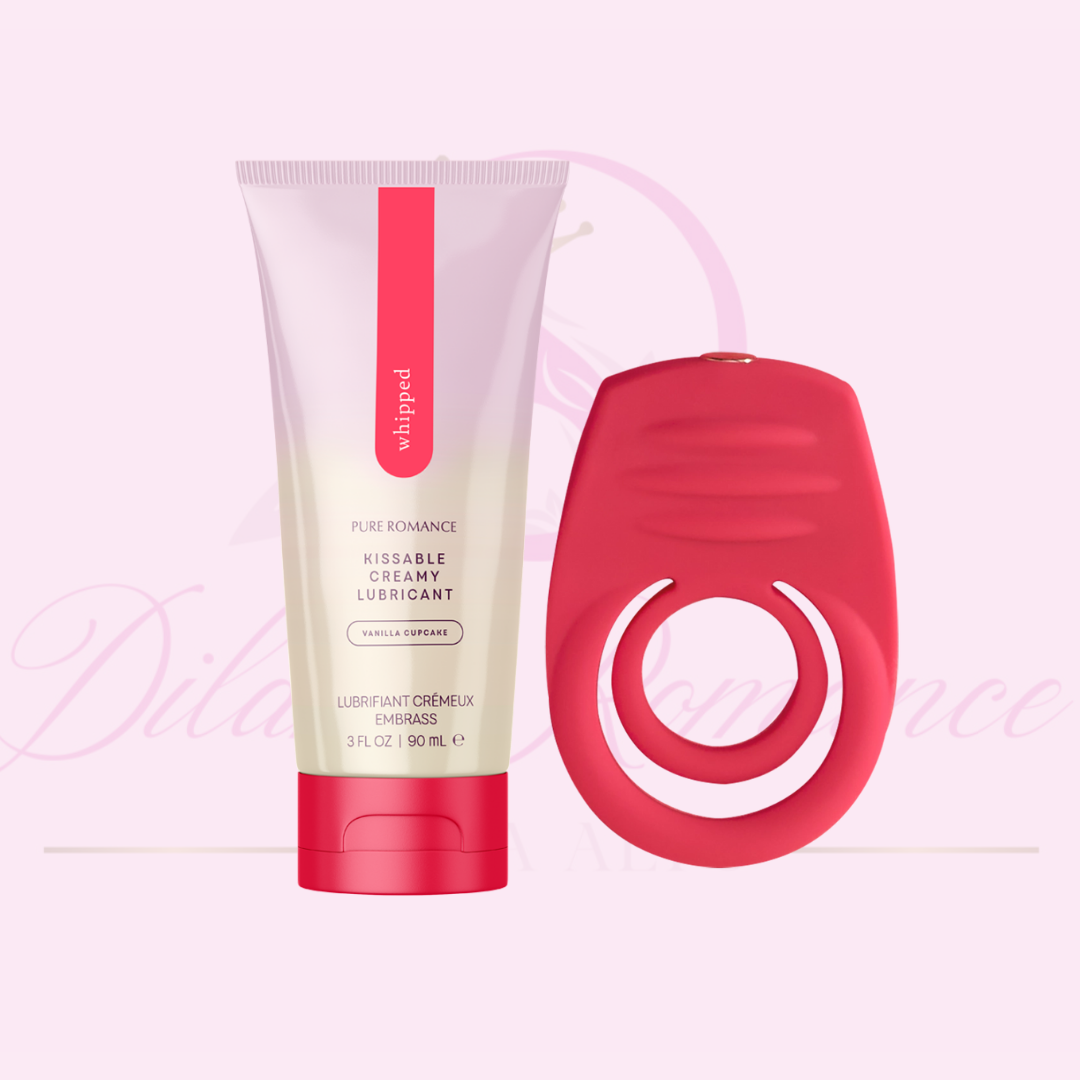 Cuando una actuación increíble no es suficiente, ¡necesitas una función doble! Los anillos gemelos flexibles ofrecen sensaciones satisfactorias para tu pareja, mientras que un potente vibrador de clítoris de 10 funciones te brinda un placer intenso. Deslice un anillo de silicona sobre el pene y el otro sobre los testículos, luego gire el masajeador acanalado hacia su clítoris para un espectáculo alucinante que recién comienza. + Su lubricante Whipped